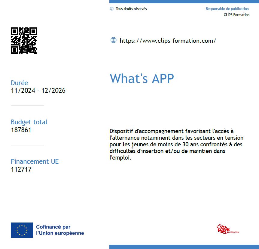 Dans ce contexte, CLIPS FORMATION souhaite, avec le soutien du Fonds Social Européen Plus (FSE+), renforcer son action en faveur de la remobilisation et de la montée en compétences des jeunes du territoire. Le dispositif vise à favoriser l’accès à la qualification, à développer les savoirs et savoir-être professionnels attendus par les entreprises locales, et à préparer la transition vers l’emploi durable ou l’alternance.